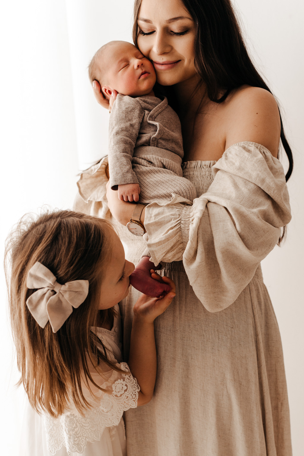 Sesja może zostać wykonana dla samej mamy z maleństwem jak i również z partnerem/mężem oraz dziećmi, wręcz obowiązkowo. Partner i dzieci są mile widziani podczas wspólnej pamiątki! Każda sesja noworodkowa to mieszanka kadrów samego maluszka, samej mamy lub taty z maleństwem oraz ujęć z partnerem i rodzeństwem razem. To niepowtarzalny czas, który naprawdę warto spędzić razem. Na koniec obowiązkowo proponuję wykonać wydruk wielkoformatowy takiej pamiątki! Ma cieszyć Wasze oko również na codzień a nie tylko kurzyć pliki w komputerze!